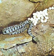 Essas espécies não deixarão ninguém se aproximar dos ovos até que eles choquem. Onde as cobras põem. Não é peçonhenta nem ofensiva.